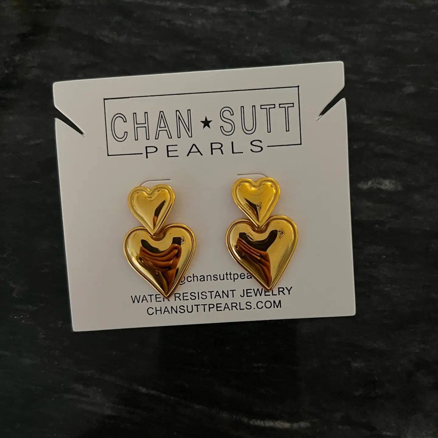 Chansuttpearls presents the Double Heart Earrings, a captivating addition to our Dangle Earrings collection. These earrings are not just a symbol of love but also a testament to our commitment to quality, boasting water resistance and a lifetime warranty. Our brand's passion for fashion and jewelry is embodied in this design, making it a beautiful and reliable choice for your jewelry collection.