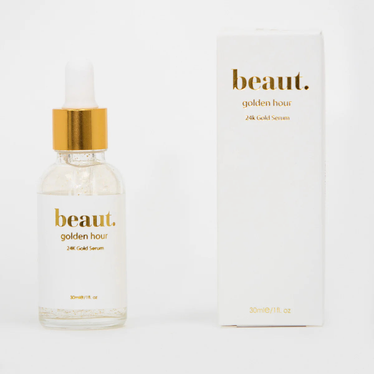 What: The beaut. Golden Hour Serum is packed full of highly concentrated hyaluronic molecules that provide visibly plump skin! Intensive hydration leaves skin supple & refreshed. With ingredients such as aloe barley & goji berries that are packed with; antioxidants, enzymes, Vitamins A & C, & anti-inflammatory!