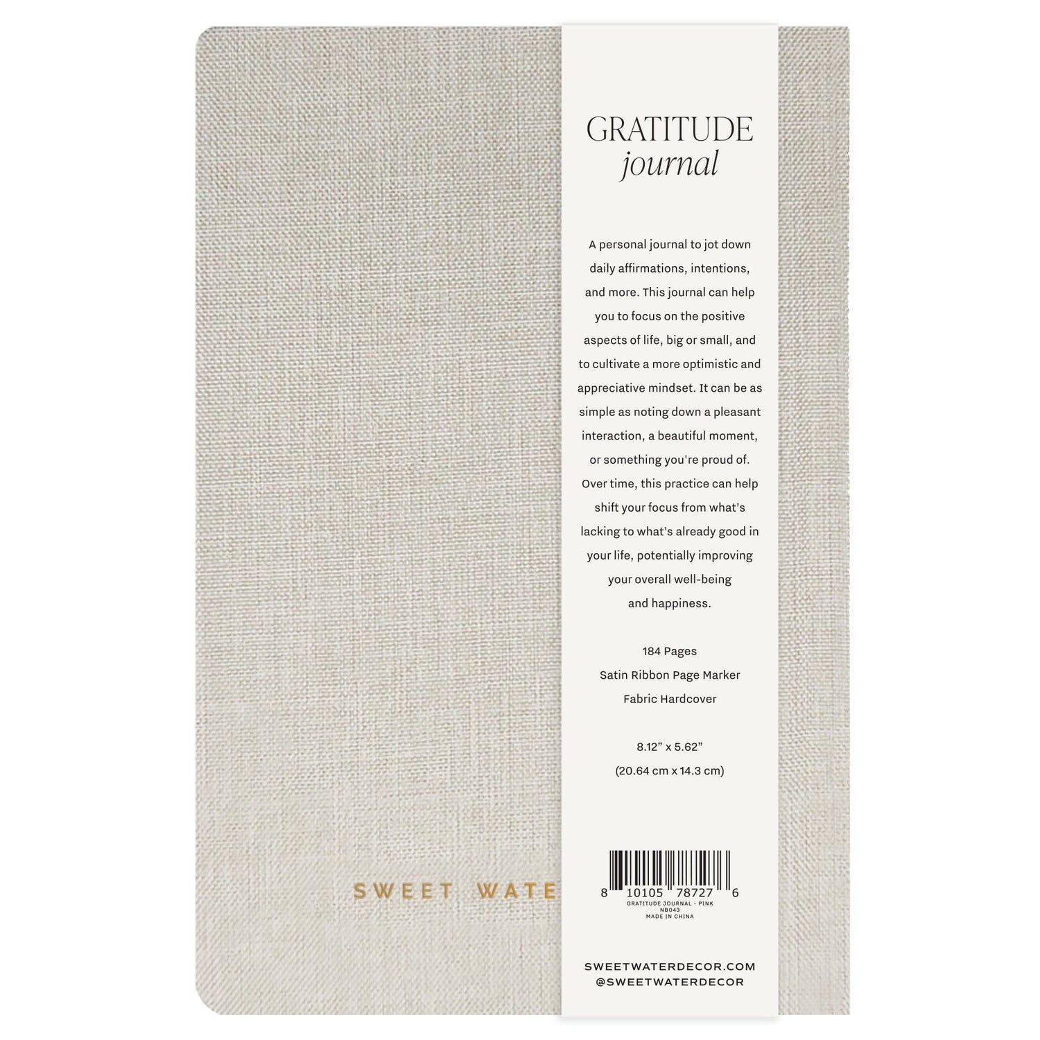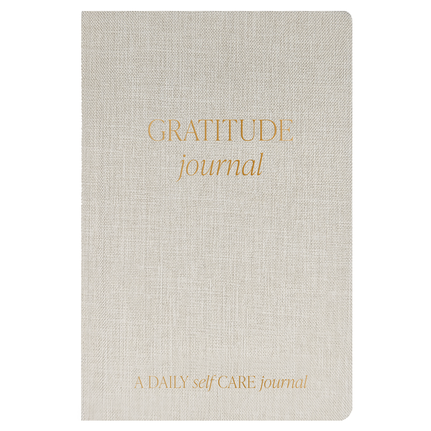 A personal journal to jot down daily affirmations, intentions and more. This journal can help you to focus on the positive aspects of life, big or small, and to cultivate a more optimistic and appreciative mindset. It can be as simple as noting down a pleasant interaction, a beautiful moment, or something you're proud of. Over time, this practice can help shift your focus from what’s lacking to what’s already good in your life, potentially improving your overall well-being and happiness. DETAILS: • Size: 5.75" x 8.25" x .65" • Design: Gratitude Journal (with prompts) • Tan Fabric Journal with Gold Foil Details • 100gsm Uncoated Lined Paper • Satin Ribbon Bookmark • 184 pages front and back - 1 Year of Prompts • CATEGORIES: Self Care, Gifts, Wellness, Home Decor, Daily Journal, Prompted Journal, Five Minute Journal, Mindfulness