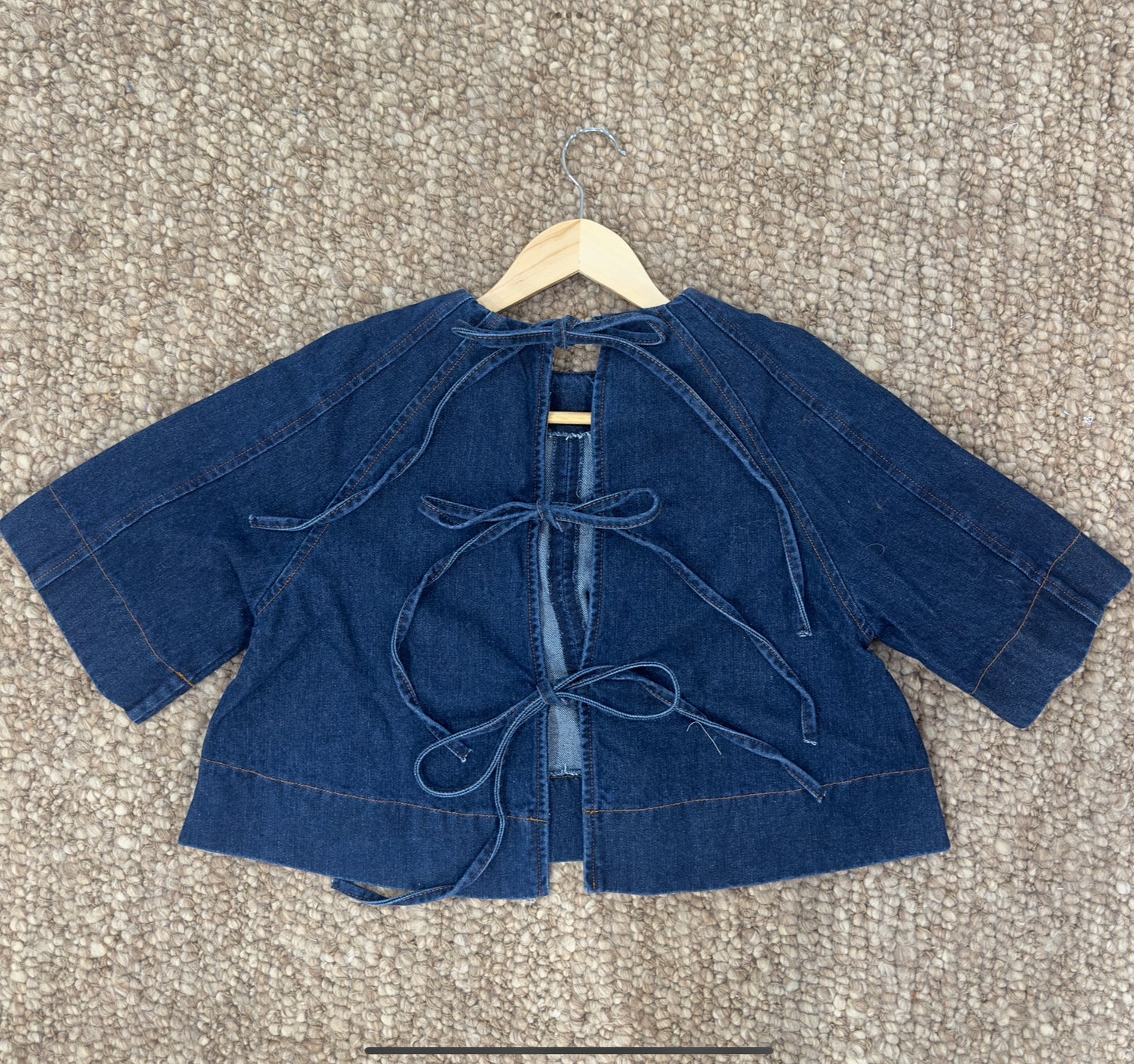 The Indigo Tie-Back Crop Top is a chic and playful piece, crafted from a blend of 95% cotton and 5% spandex for a comfortable fit with a touch of stretch. This short-sleeve crop top features a rich denim finish in a classic indigo shade, perfect for a casual yet stylish look. The structured bodice is accented with subtle stitching, creating a flattering shape that pairs beautifully with high-waisted jeans or shorts. Its standout feature is the open back, adorned with delicate ties that form elegant bows, adding a feminine and flirty flair. Ideal for warm weather or relaxed outings, this crop top blends denim's vintage charm with a modern, cropped silhouette.