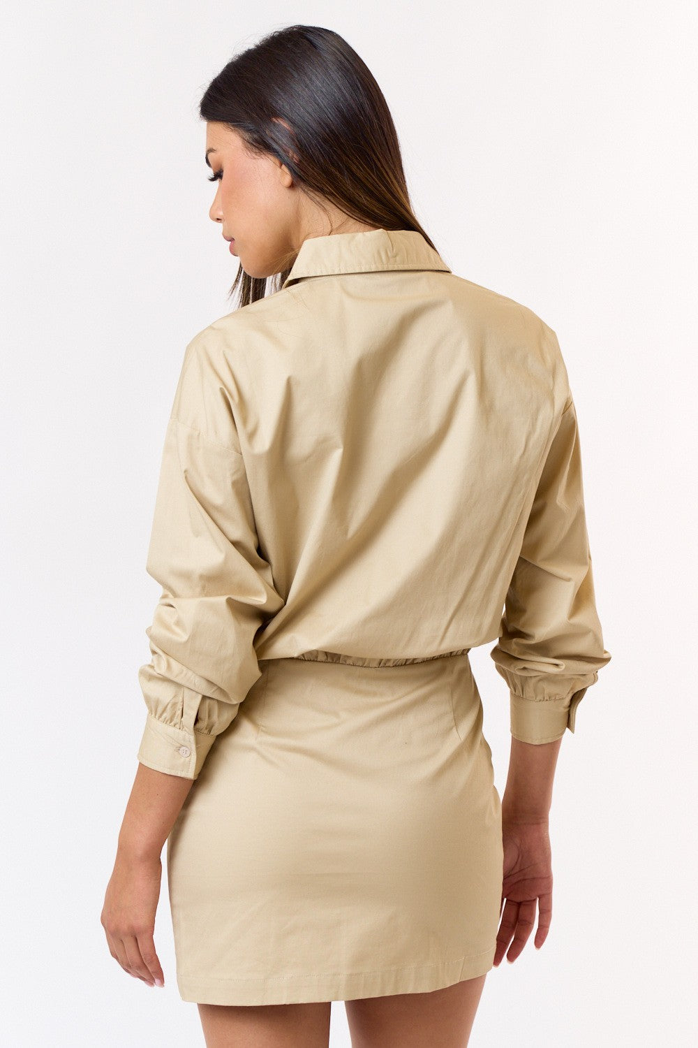 Button up bottom slit shirt mini dress 97%cottn 3%spandex