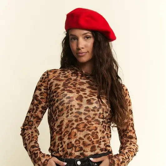 ANIMAL PRINT MESH MOCK NECK TOP -Mesh turtleneck blouse -Lightweight with spandex -Long sleeves -FABRIC 93%POLYESTER 7%SPANDEX