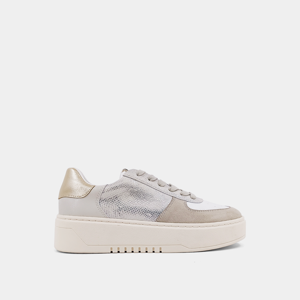 Indulge in a unique level of style with our Shirley platform sneakers. These sneakers offer sturdy support and stability with their platform design while providing a retro-inspired upper crafted from soft faux leather, suede, and a combination of printed leathers and synthetics with striking snakeskin patterns. You can pair these sneakers with skirts or tailored pants to achieve a fashionable look.