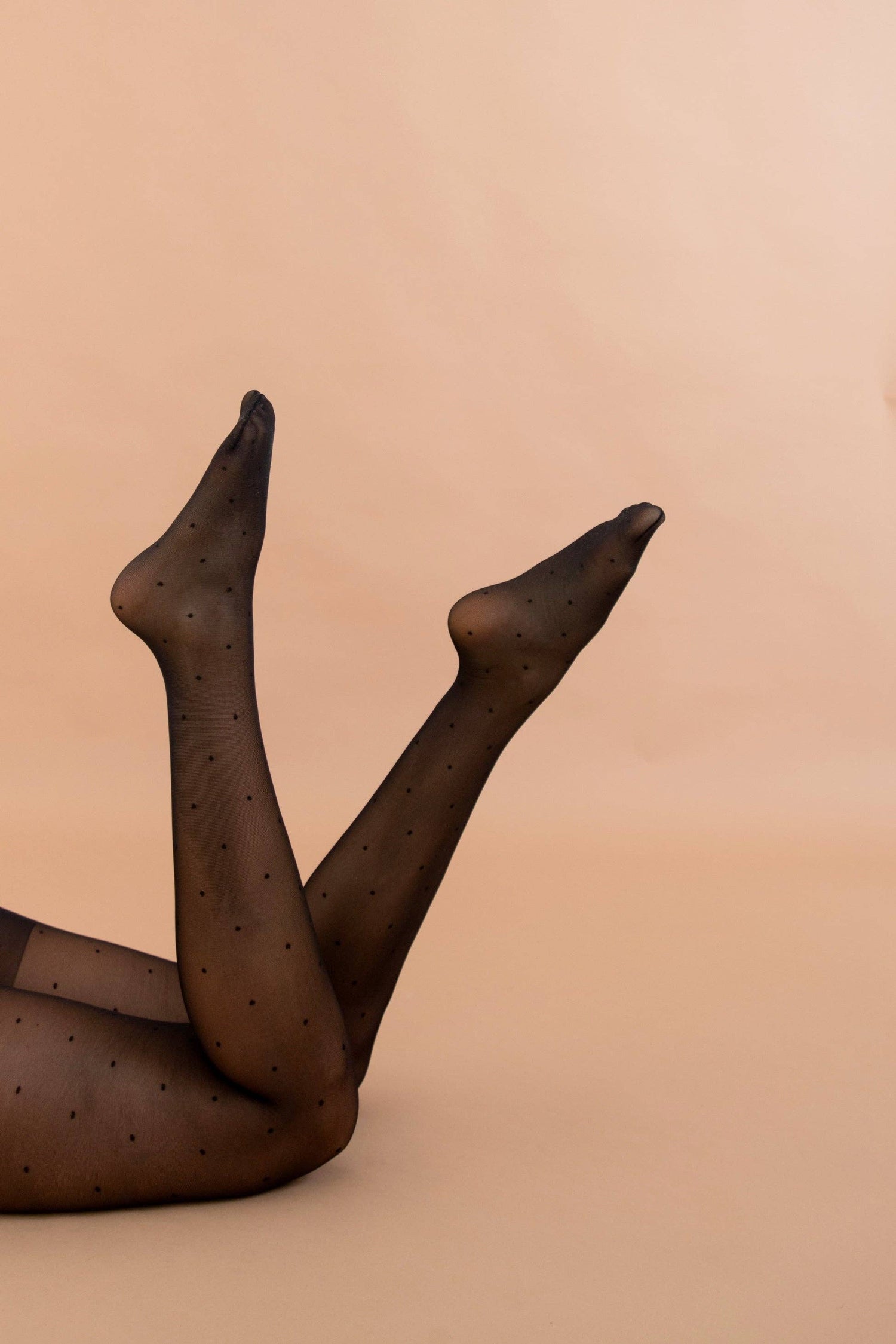 Very cutesy. Our Polka Dot tights are timeless and classic. The mini dots throughout will add a little fun and whimsy into your classic black tights. These are an awesome addition to any gift you may be giving this season.