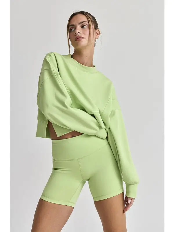 Zesty Loose Fit Seam Detailed Top and Bike Shorts Set